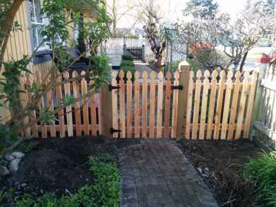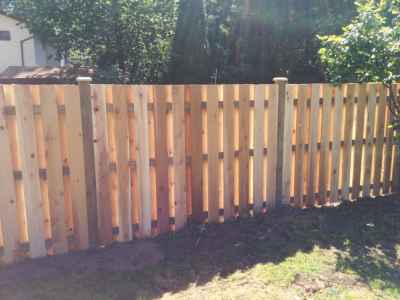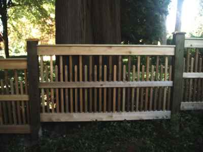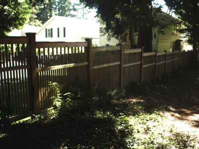 Hand building a wood fence does cost a little more than prefab fence panels but because they tend to be fastened together with staples and non-galvanized fasteners, building on site allows us a level of quality control than cannot be matched with pre-fab panels.